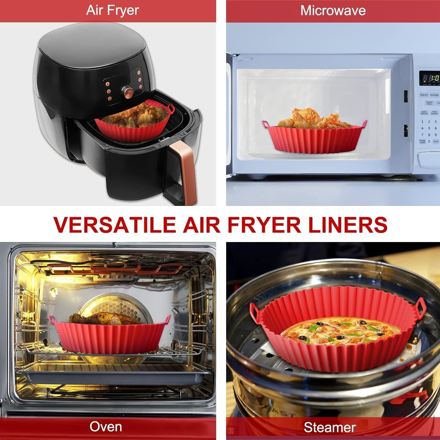 6Pcs Silicone Air Fryer Basket and Tray with Handles Non-Stick, Heat-Resistant Air Fryer Basket, Oven Accessories Round Baking Tray (Multicolor)