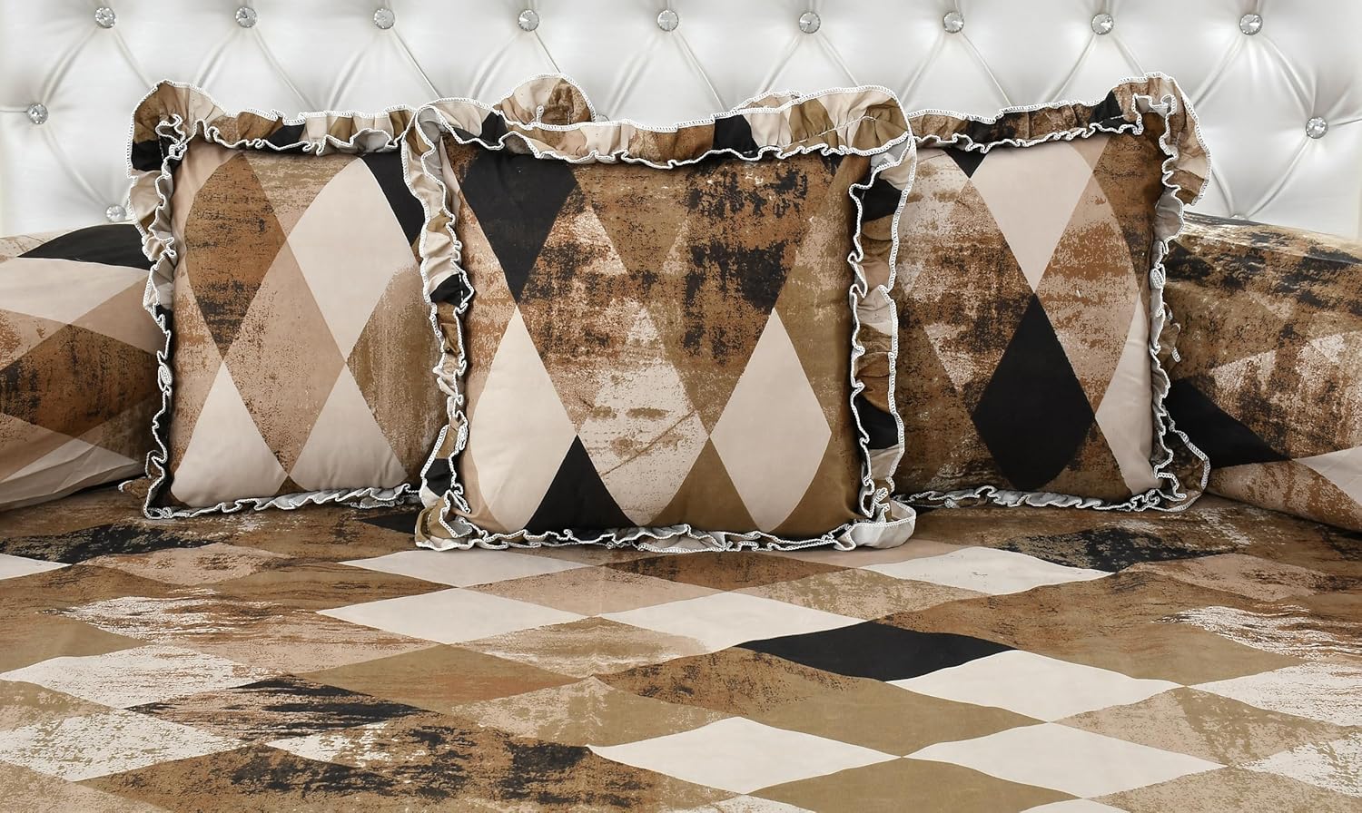 Decorative Frill Checked Cotton Diwan Set – 8 Pcs