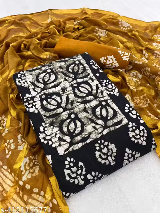Upgrade your ethnic wardrobe with this pure cotton Batik suit material, designed for all-day comfort and effortless style. The hand-printed Batik pattern adds a unique, timeless touch.