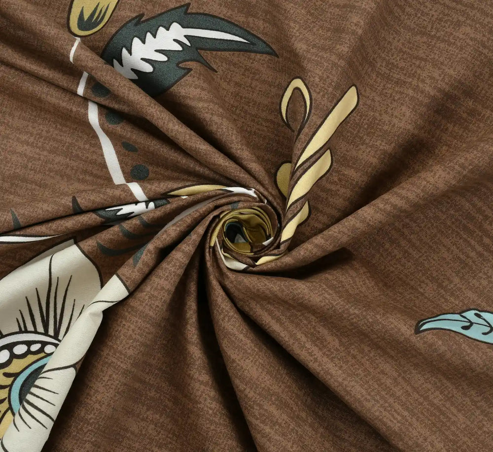 Caramello Brown Floral Nest 5-Piece Premium Quilted Bedsheet Set