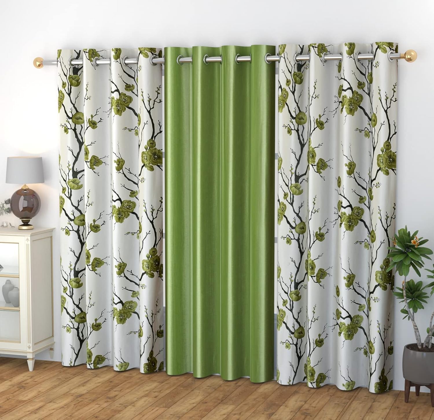 Give your space a fresh upgrade with The Elephant Big Store's stylish set 2 floral + 1 plain curtain for the perfect balance of pop and calm. Made from soft, durable polyester, these curtains offer room-darkening comfort, are easy to wash.