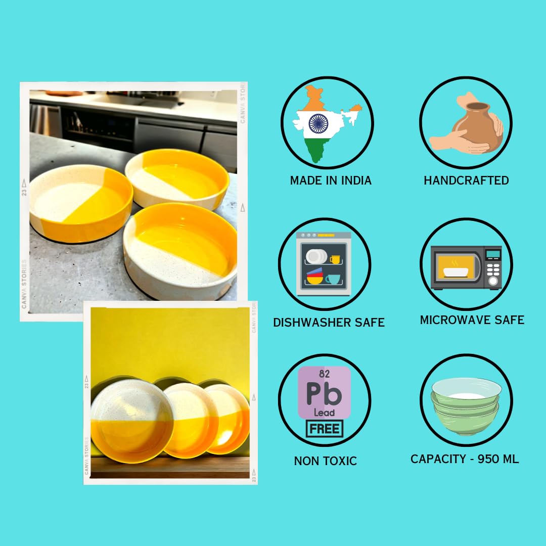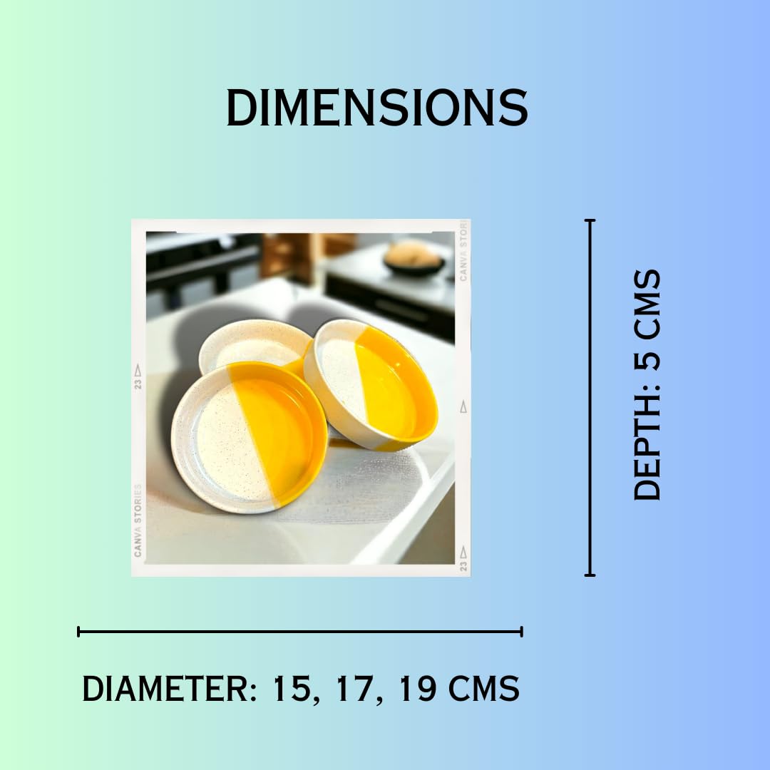 Brighten up your meals with the The Elephant Big Store's handmade ceramic premium flat bowl set. This stylish yellow-white set of 3 bowls is perfect for serving snacks, salads, pasta, nuts, and more.