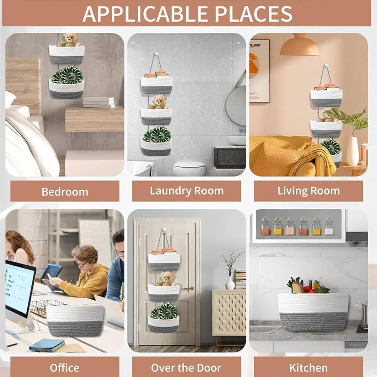 Hanging Basket Large 3 Tier Storage Bag for Indoor Tabletop Bathroom Bedroom Hanging Basket