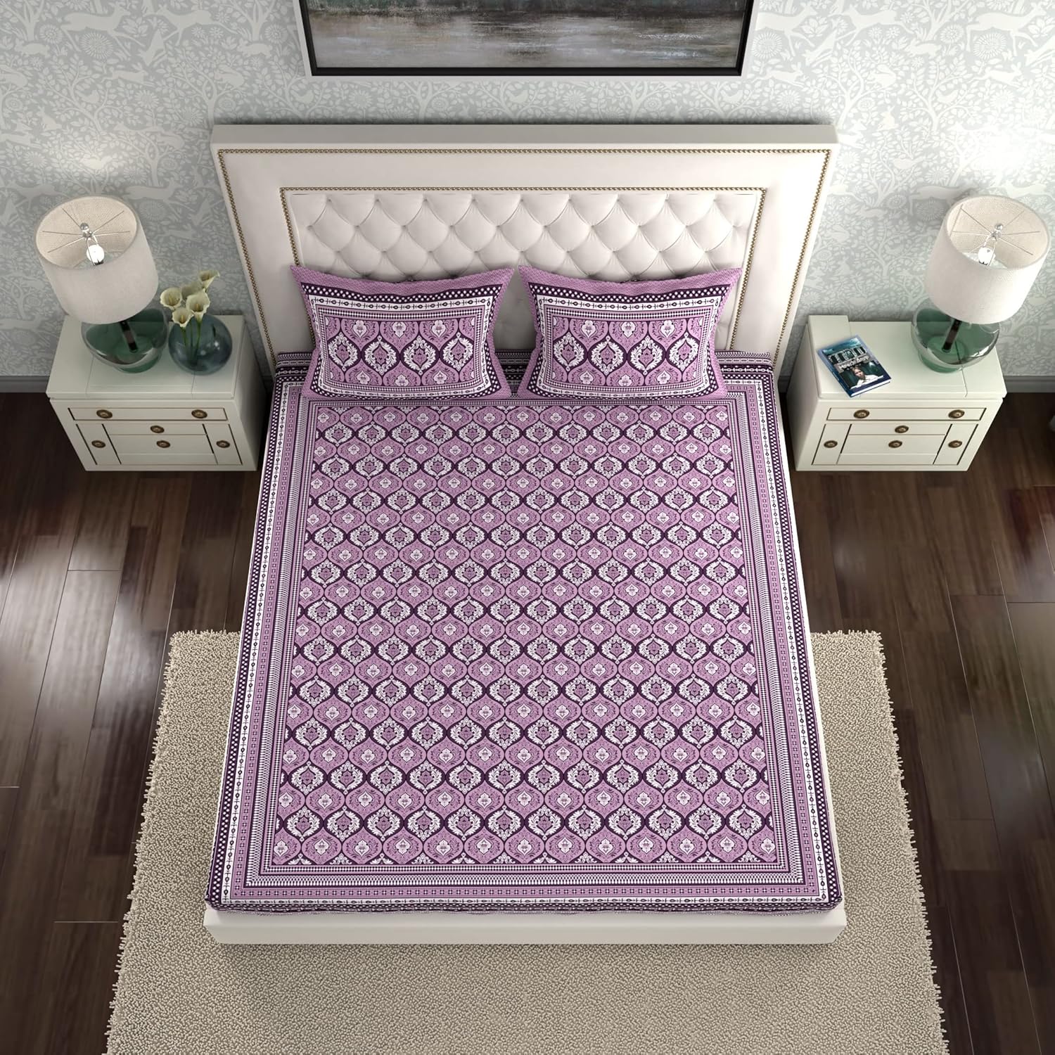 Upgrade your bedroom with The Elephant Big Store’s superfine 100% cotton Purple color bedsheet featuring elegant ethnic muftis. Soft, breathable, and ideal for summer, it offers comfort and style in one complete set.