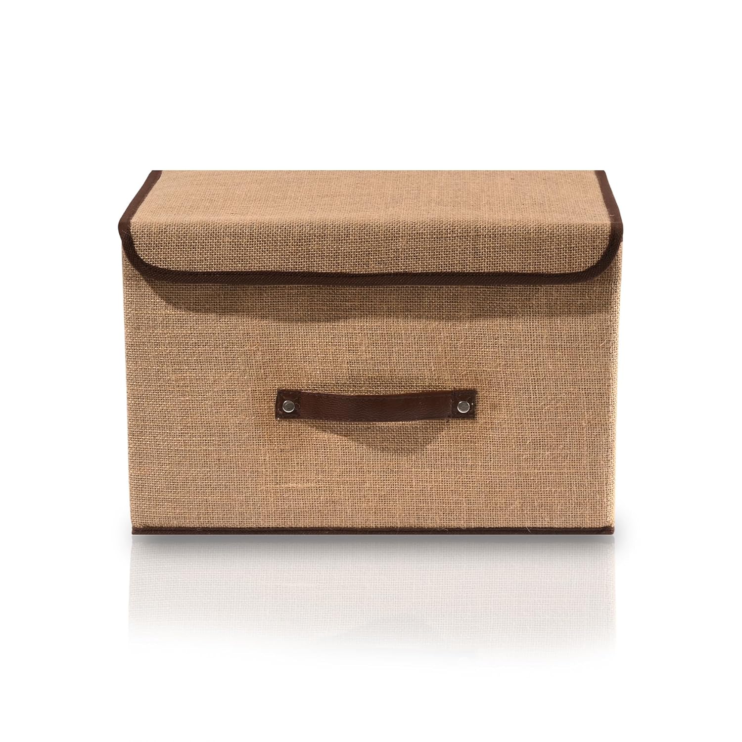 Declutter in style with The Elephant Big Store's Foldable Storage Organizers. Made from durable jute canvas, this large set of 2 comes with lids and handles, perfect for storing clothes, toys, books, or blankets while saving space in your closet or room.
