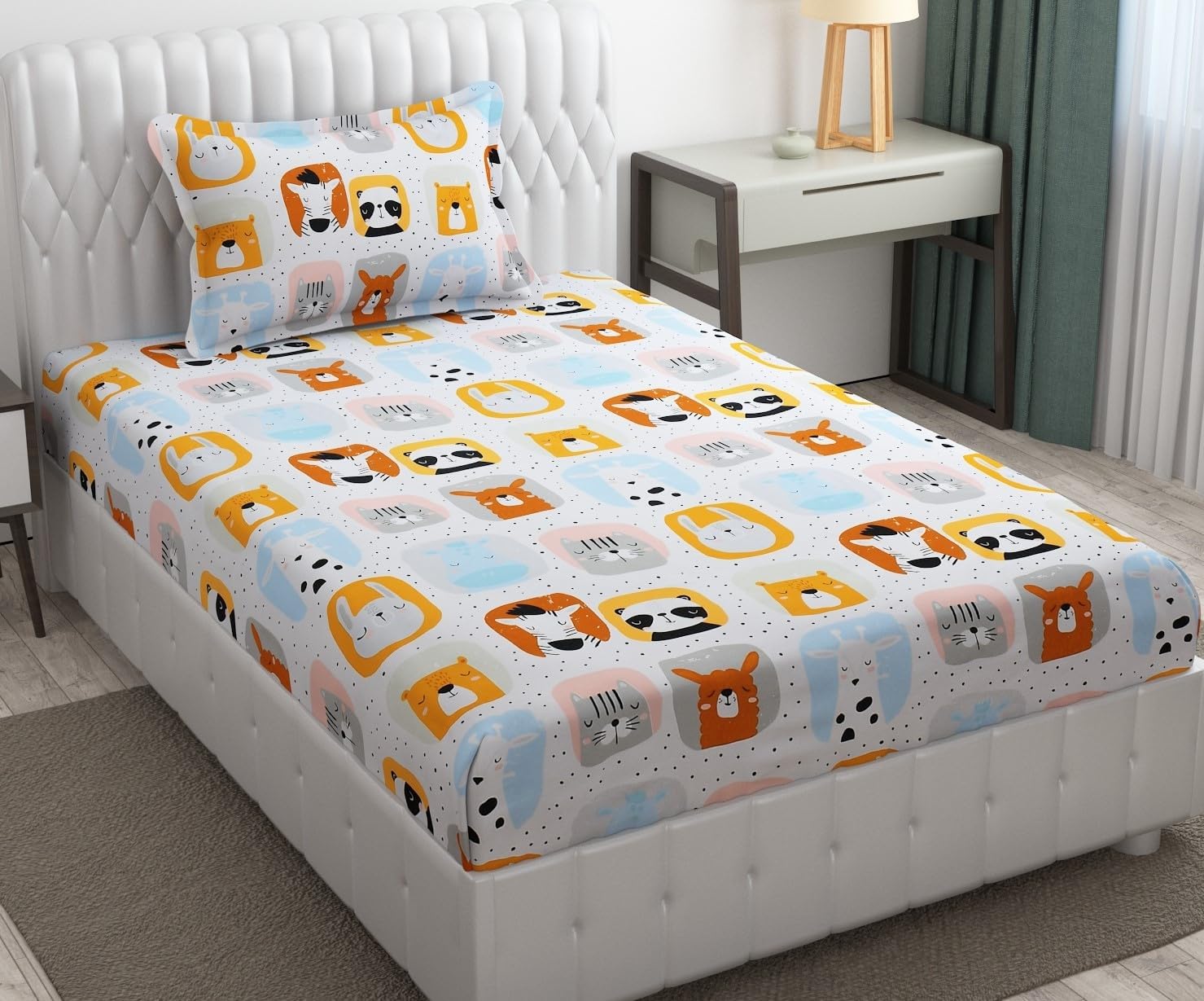 Brighten your child’s room with The Elephant Big Store's Super Soft Off-White Bedsheet Set, featuring playful animal prints on a calming off-white base. Made with soft glace cotton, it offers all-day comfort and a cheerful vibe perfect for kids' spaces.