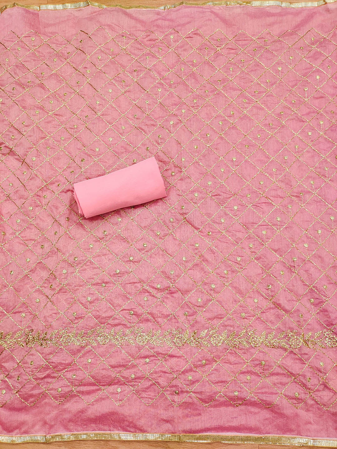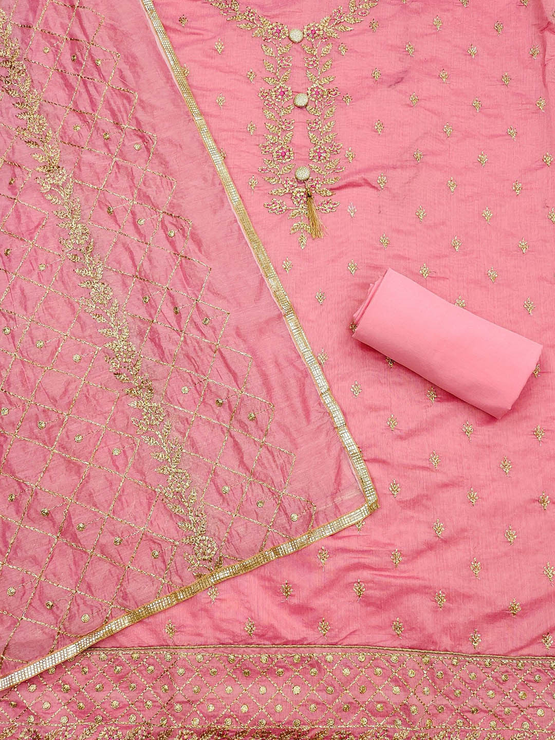 Rani Raiment Floral Embroidered Thread Work Chanderi Silk Unstitched Dress Material