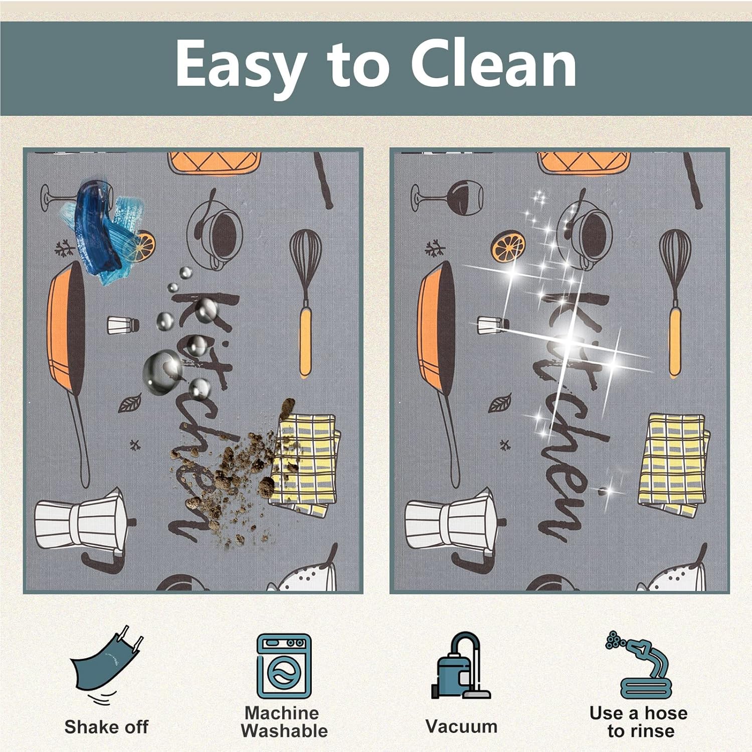 Keep your kitchen clean and dry with The Elephant Big Store's stylish 2-piece mat set by. Made from imitation linen fabric, it features a water-absorbent surface, non-slip backing, and a low-profile design that fits under doors with ease
