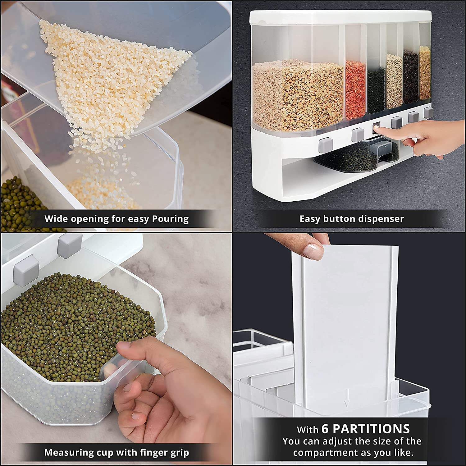 Wall Mounted Cereal Plastic Dispenser - 6 Grid Dry Food Dispenser for Kitchen Storage