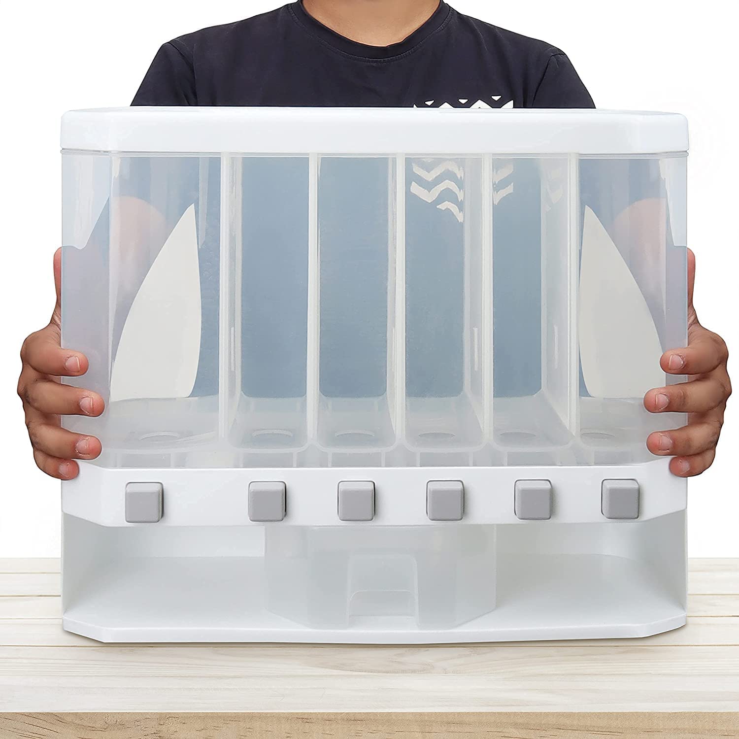 Maximize kitchen space and stay organized with the The Elephant Big Store's 6-Grid Food Dispenser. Designed for wall-mounting, this sleek container stores cereals, rice, coffee beans, snacks, and more — all in one place.